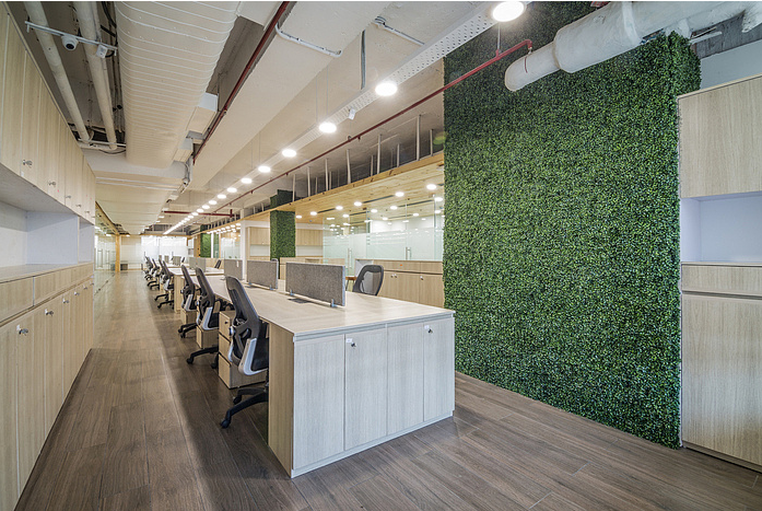 本設(shè)計(jì)是聯(lián)合辦公室裝修效果圖,上海同濟(jì)裝修公司設(shè)計(jì)師以白色和原木色為主要色調(diào),充分利用空間,搭配大面積綠植,打造清新、辦公氛圍濃烈的聯(lián)合辦公裝修。
